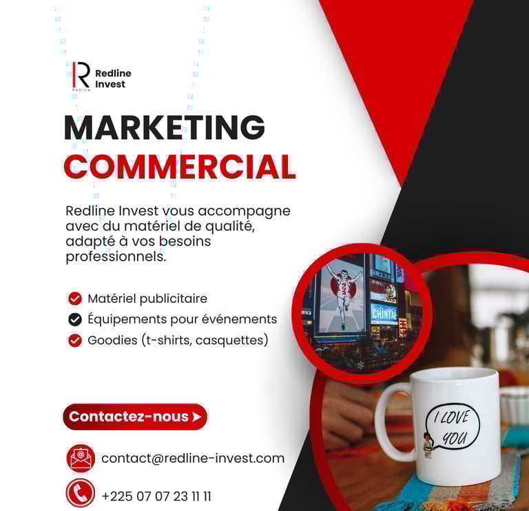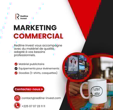 Redline Invest accompagne les entreprises dans le développement de leur visibilité, de leurs ventes et de leur image de marque à travers des solutions marketing et commerciales sur mesure. Nous mettons à votre disposition des compétences et outils pour booster vos performances sur le marché.